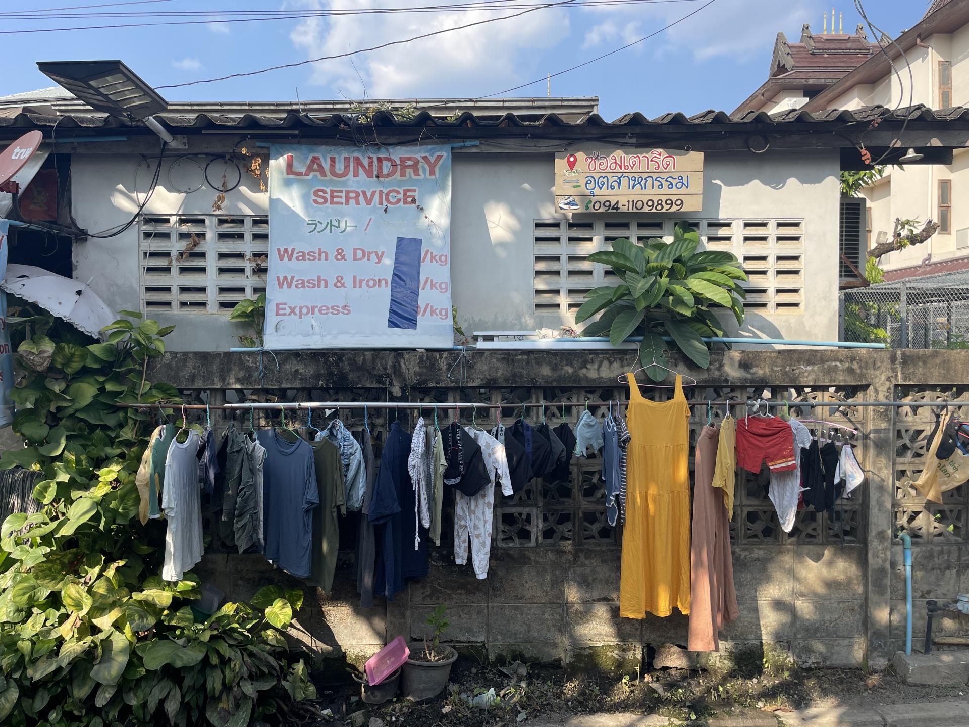 올드시티 골목 곳곳에 세탁소가 참 많은데, 빨래하는 장면이나 세탁물을 옷걸이에 걸어 말리는 장면 등도 재미있었어요. 걷다 보니 폐교도 발견하고, 올드시티나 그 바깥 지역이나 인도 정비가 너무 안 돼있어서 치앙마이도 보행권이 참 보장되지 않는 나라구나- 하는 것도 알게 되고😂, 일년 내내 따뜻한(더운) 나라여서 그런지 눈길 닿는 곳마다 보이는 커다란 나무도 매우 인상적이었습니다.