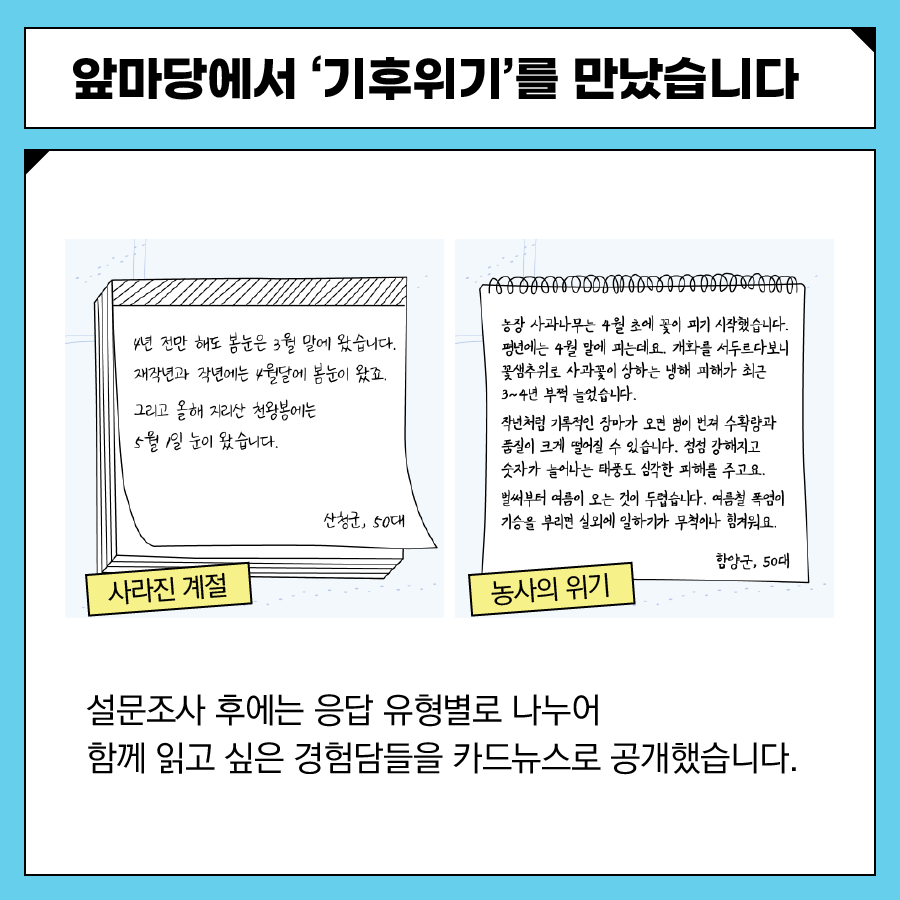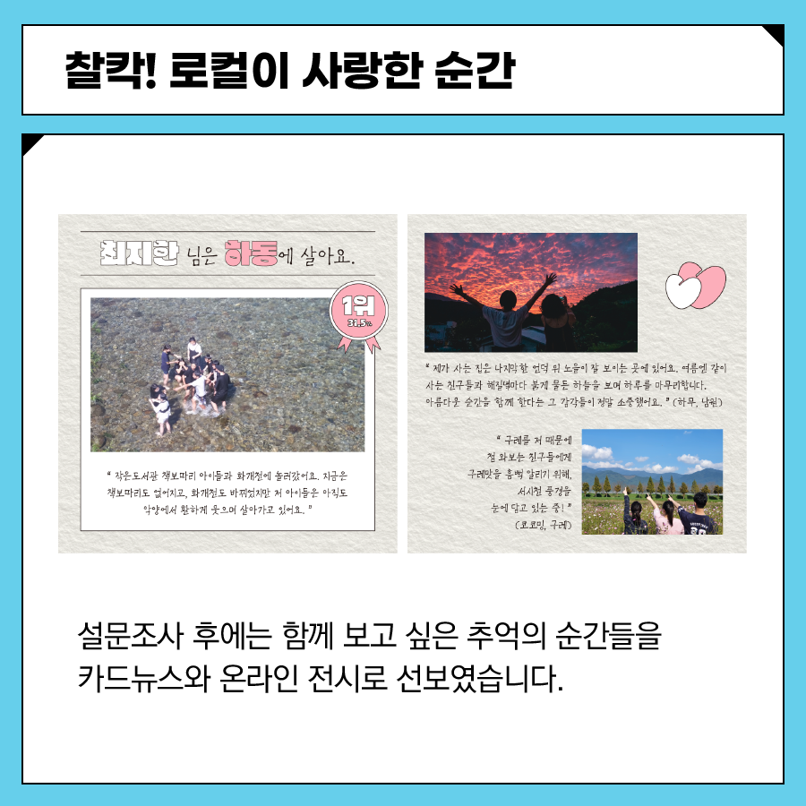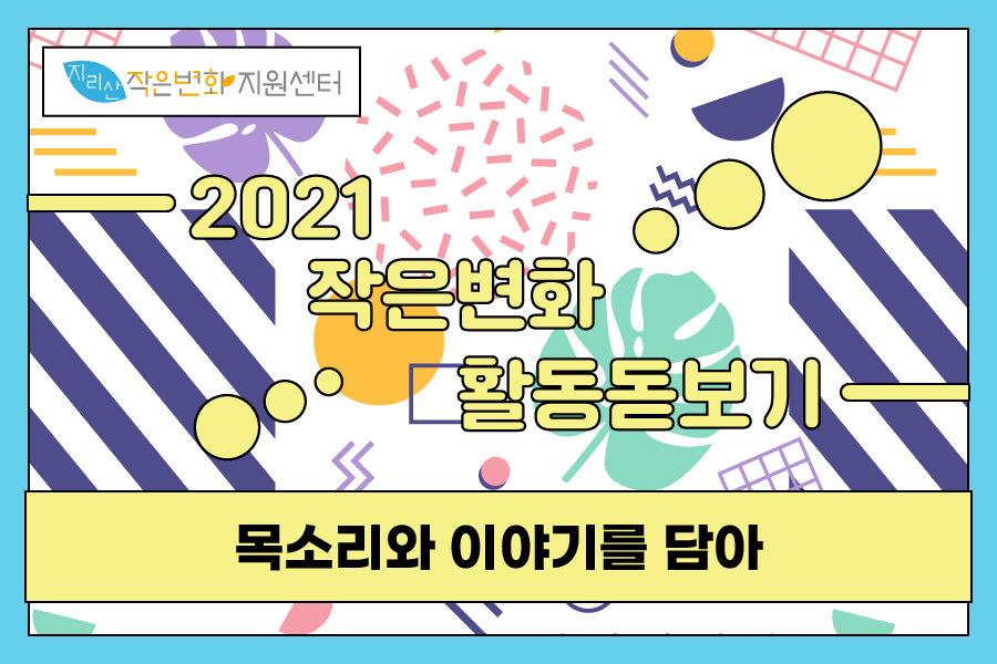 다시 돌아보는 2021년, 지리산 작은변화지원센터가 지역사회와 함께 진행한 활동들을 카드뉴스에 꽉꽉 눌러담아 정리합니다. 총 5부로 구성했습니다.