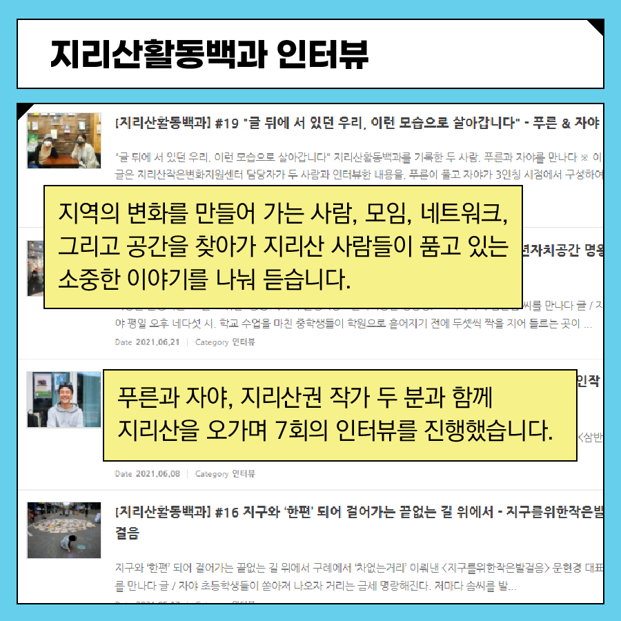지리산 작은변화지원센터, 2021 활동돋보기