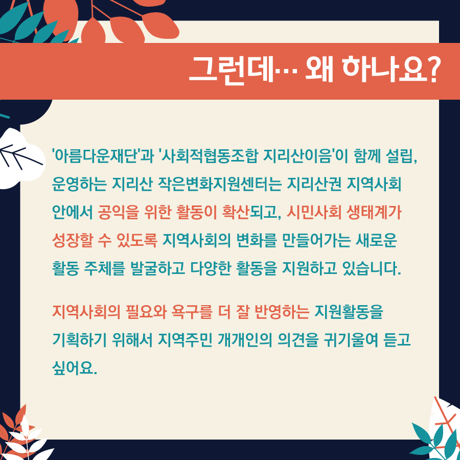 지리산 작은변화지원센터가 지리산권에 사는 당신에게 묻습니다.