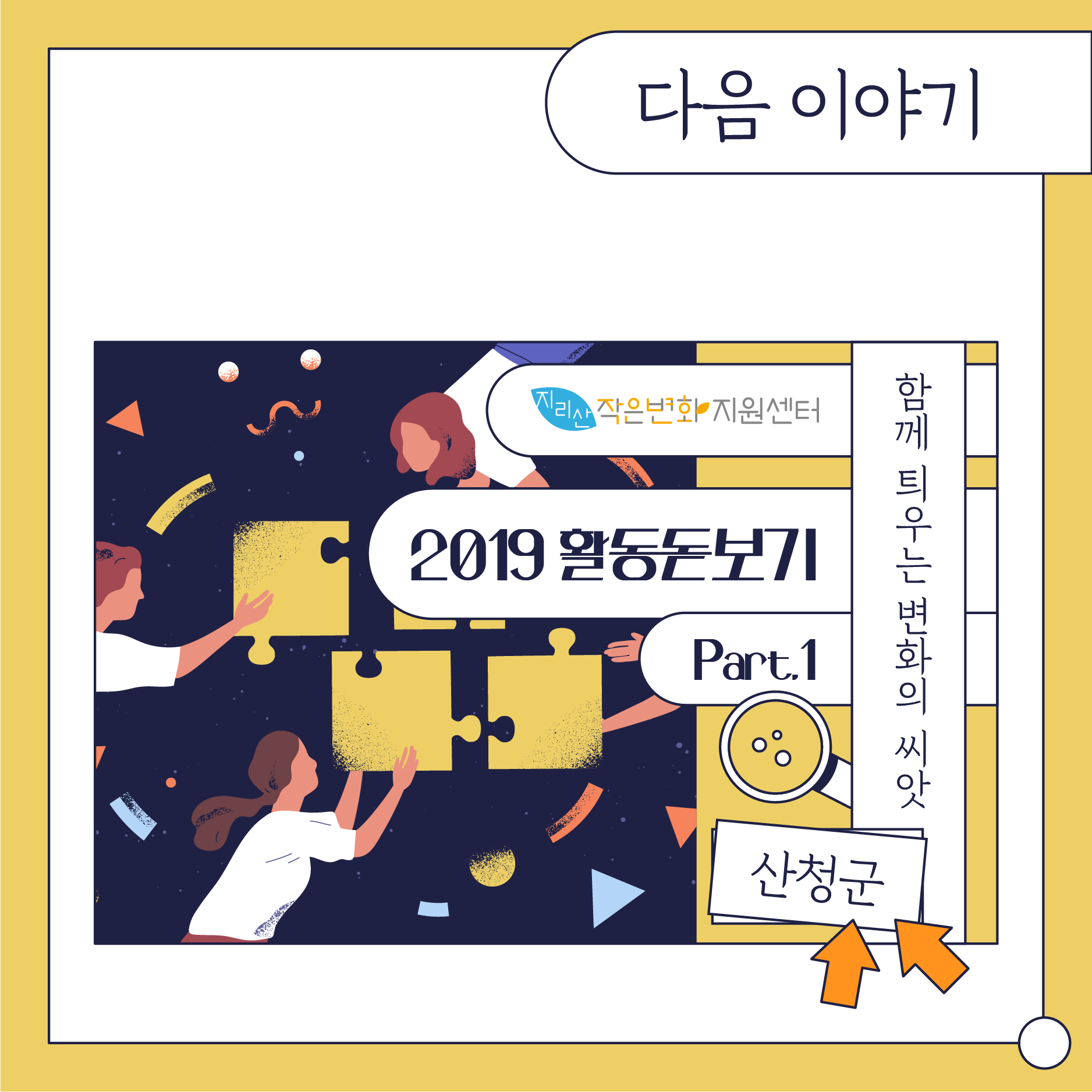 우리 곁에서 하루하루 조금씩 피어나는 작은변화들을 잊지 않도록, 2019년에 지리산작은변화지원센터에서 지역사회와 함께 진행한 활동들을 되돌아봅니다.
