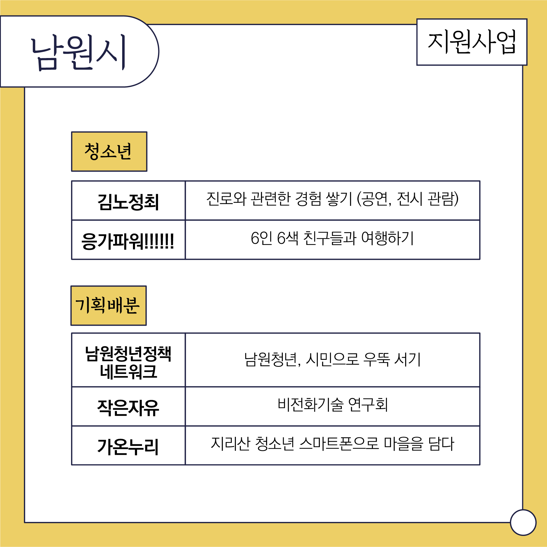 첫번째 파트인 '함께 틔우는 변화의 씨앗'에서는 5개시군에서 있었던 지원사업과 관련 활동들을 정리합니다. 두번째 파트인 '목소리와 이야기를 담아'에서는 작년에 조사사업의 일환으로 청소년과 지역 활동가들의 목소리를 들었던 작업을 나눕니다. 마지막 '배움으로 연결되는 현장'에서는 센터에서 진행한 교육과 워크샵, 지리산포럼을 담았습니다.