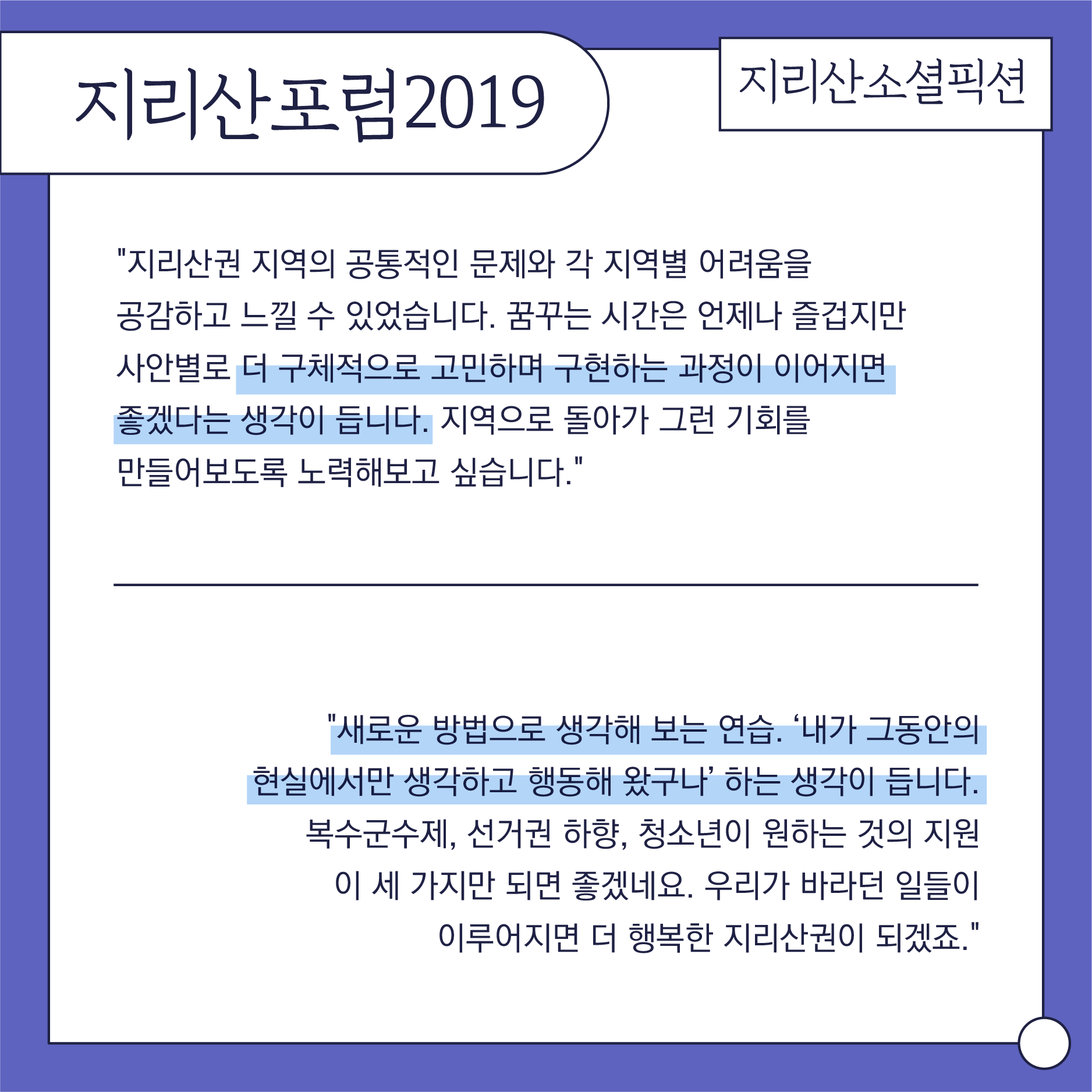 지리산 작은변화지원센터 2019 활동돋보기