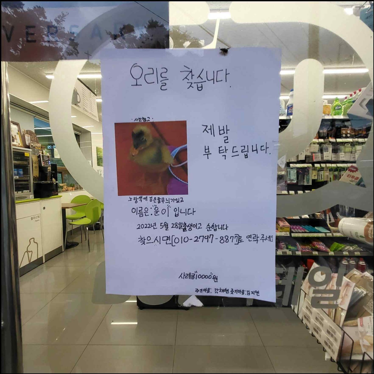 지리산 품 속 동네, 산내면의 첫 인상은 바로 이 포스터였습니다. 산내에 도착한 첫날, 아침거리를 사러 들린 편의점 문에 오리를 찾는 포스터가 붙어있었는데요, 누가 봐도 직접 만든 것 같은 이 포스터가 참 인상적이었습니다. 사라진 아기 오리를 찾는 포스터가 찢기거나 바닥에 버려지지 않고 말짱하게 붙어있는 광경을 너무 오랜만에 봐서 사실은 조금 감동이었어요. 산내를 오가는 사람이라면 누구나 사용할 수 있다는 장바구니함에 깃든 느슨하고 따뜻한 신뢰가 이 동네를 조금 더 애정어린 눈빛으로 볼 수 있게 하는 계기가 되어주었습니다.