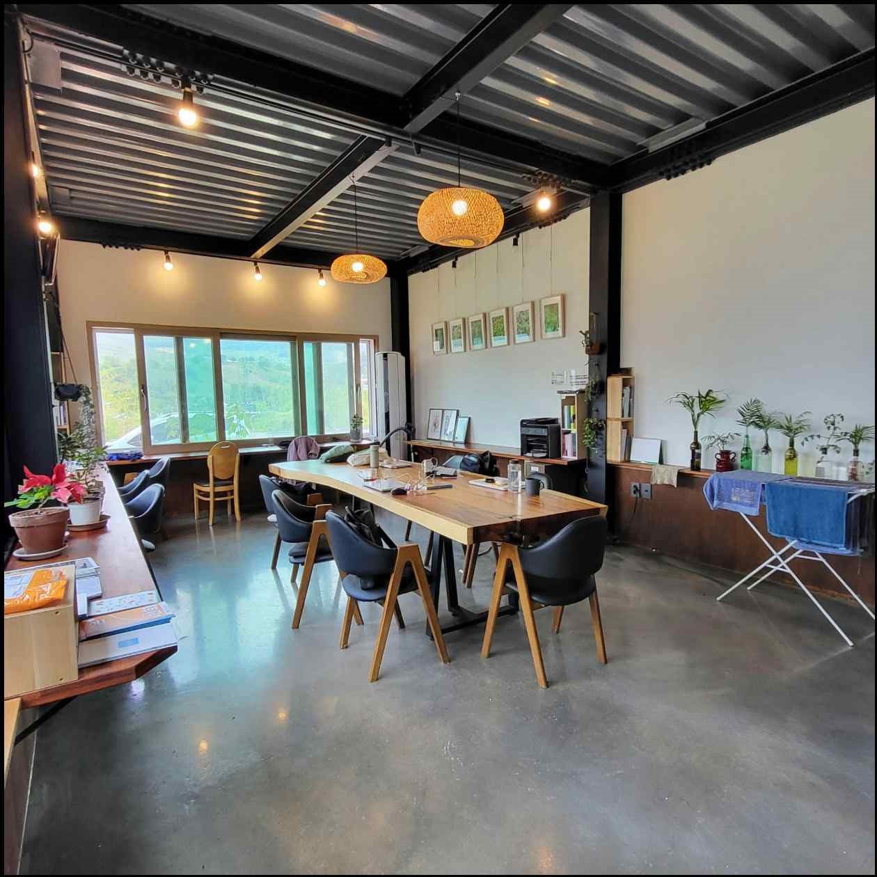 업무공간으로 안내받은 곳은 총 세 곳이었습니다. 지리산작은변화지원센터 들썩의 공유오피스, 컨퍼런스홀, 마을카페 토닥입니다. 그 날의 기분에 따라 여기저기 오가며 일할 수 있어 좋았습니다. 팀 회의를 계획하고 있기도 했고, 급하게 잡힌 줌 회의도 있어 회의공간 두 곳까지 모든 공간을 이용해 보았습니다.