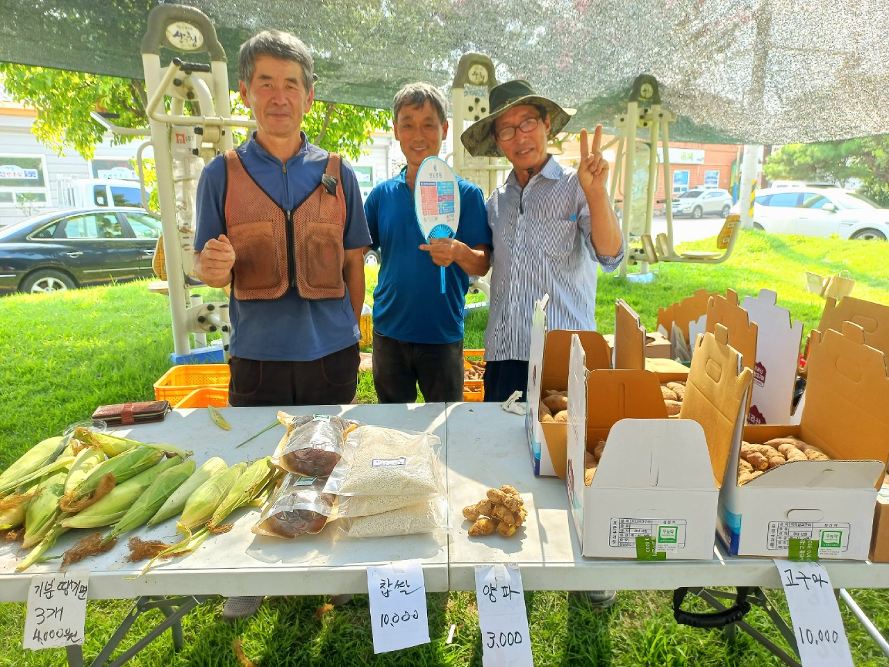 ‘목화장터’에서 동료 농민들과 함께한 박창웅 씨(맨 오른쪽).