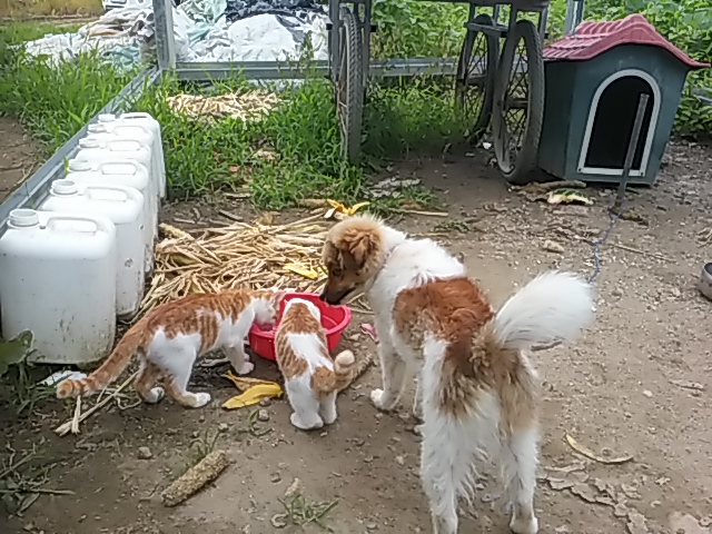 농장에서 함께 지내는 반려견과 반려묘. 박창웅 농부는 모든 게 쓸려간 물난리에도 이들이 살아남은 것이 가장 기쁘다 했다.