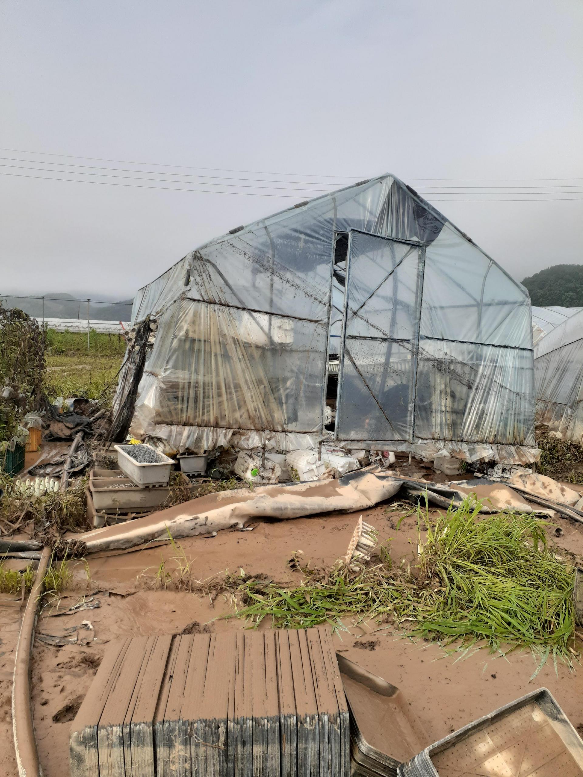 다음 날 아침에 와보니 뼈대만 남은 하우스는 토사로 덮여 있고 창고 겸 농막으로 사용해온 컨테이너는 남의 밭에 처박혀 있었다. 얼마 전 아내를 위해 새로 지은 작은 농막 역시나 온통 물에 불어 엉망이 된 상태였다. 하룻밤을 모텔에서 자는 둥 마는 둥 하고 나온 박창웅 씨 부부는 그 처참한 장면 앞에서 말을 잃었다. 아내는 하우스 앞에 주저앉아 울기만 했고, 남편은 그런 아내를 위로할 수조차 없어 먼 산만 바라보았다.