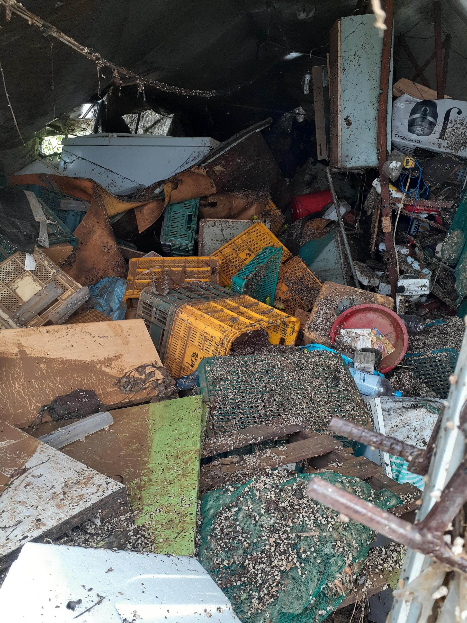 물이 빠지고 드러난 농장 모습. 곳곳이 쓰레기와 토사로 뒤덮여 있다. (이하 사진들은 박창웅 농부 제공)