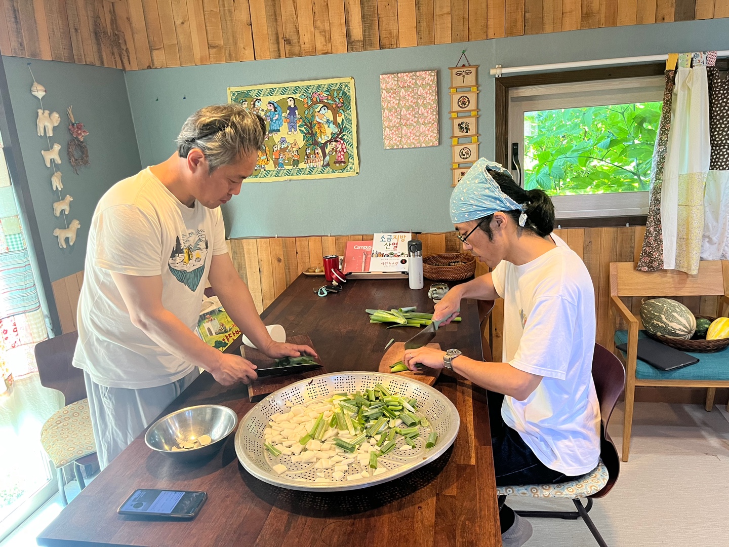 수진 공영주님이 오셔서 서툰 칼질을 하시던 순간이 재미있었어요. 아마도 살면서 요리를 거의 안하셨을 것 같은 ‘아저씨’가 서툴지만 열심히 재료를 다듬어주셨거든요. 조금 재밌기도 하고 평소와 다른 이유로 만나서 같이 요리하는 시간이 좋았어요.