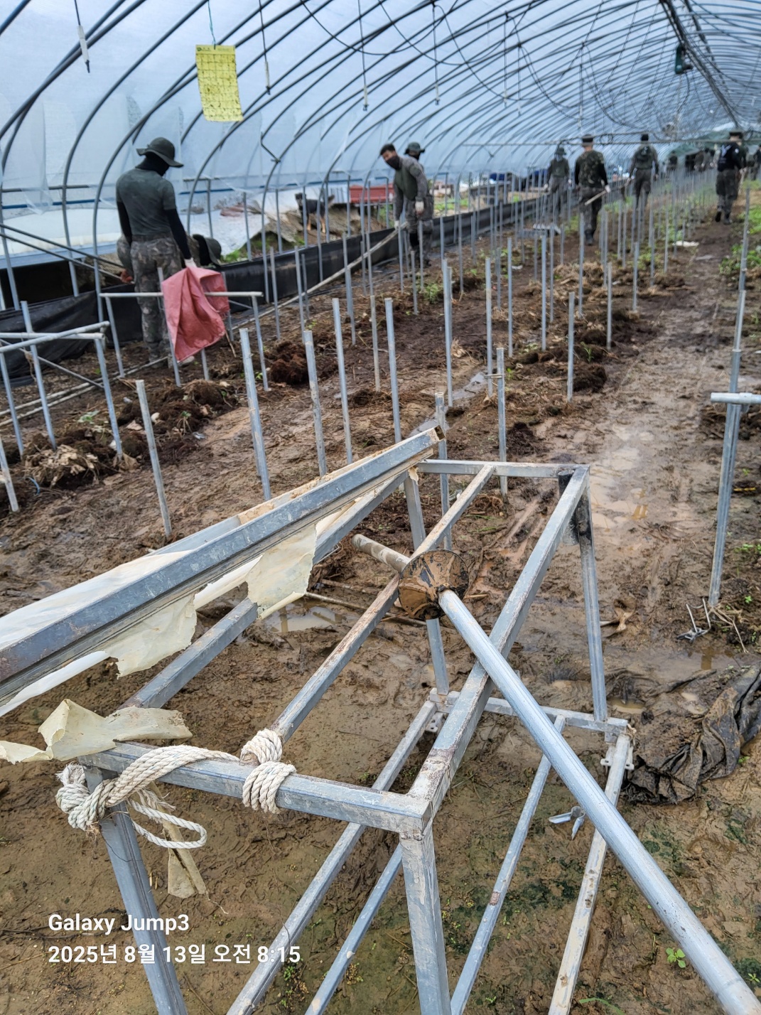 자원봉사자들과 군인들이 하우스 안에 쌓인 토사와 쓰레기를 치우고 정리하는 데 큰 도움을 주었다.
