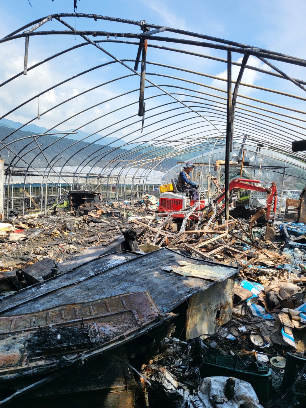 작년 8월, 기계실로 쓰던 하우스에 불이나 큰 피해를 입었다. (이하 사진들은 정현옥 농부 제공)