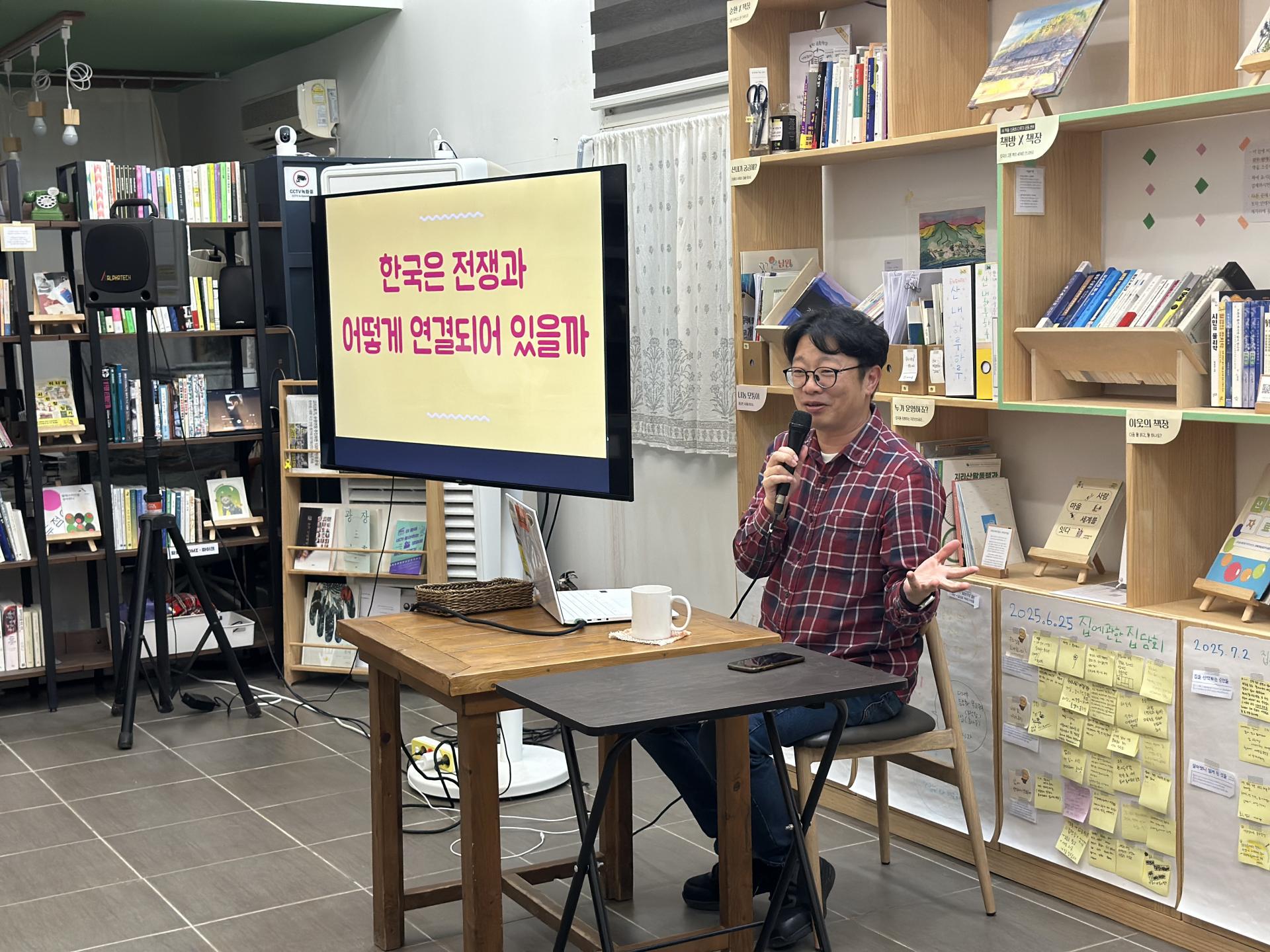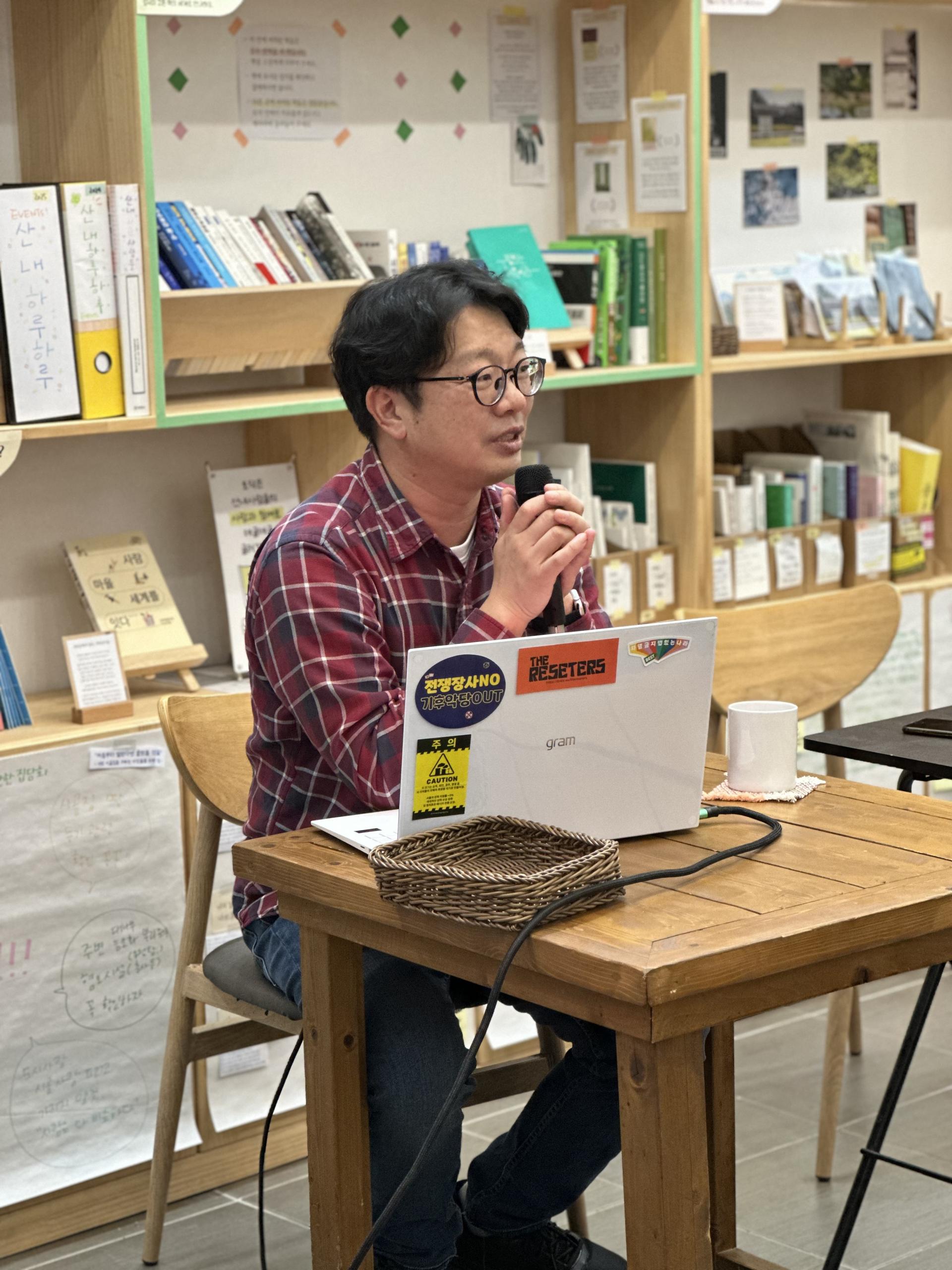 지리산문화공간 토닥에서 열린 스무번째 지리산쌀롱은 평화주의자와 반군사주의자들의 평화운동단체 ‘전쟁없는세상’의 이용석 활동가를 모시고 이야기를 나눴다. 그는 “우리의 일상이 어떻게 전쟁과 긴밀하게 연결되어 있는지 다루고 싶다”며, “일상이 전쟁과 연결되어있다는 이야기가 유쾌하지는 않다. 하지만 그렇기 때문에 우리가 전쟁을 멈출 수도 있다고 생각한다”며 서두를 열었다.