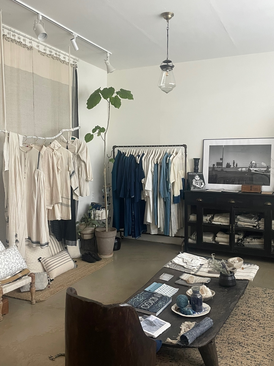 "지금은 예전처럼 저렴한 가격대의 생활복들이 많이 없어서 아쉬우실 거예요. 가격대비 좋은 옷을 구하기가 점점 어려워지기도 했고 체력도 예전같이 않아 인도 수작업 옷들만 취급하게 되면서 자연스레 그리 되었어요. 토종면화에 베틀로 짜서 만든 옷이라 아무래도 가격대가 있다보니 예전만큼 편하게 발걸음을 하시기 어려우신 것 같아요. 그래도 이 공간이 더 많은 동네분들이 편하게 들러서 차도 마시고 편하게 옷에 대한 이야기들을 나누는 공간이 되었으면 하는 바램은 여전해요."