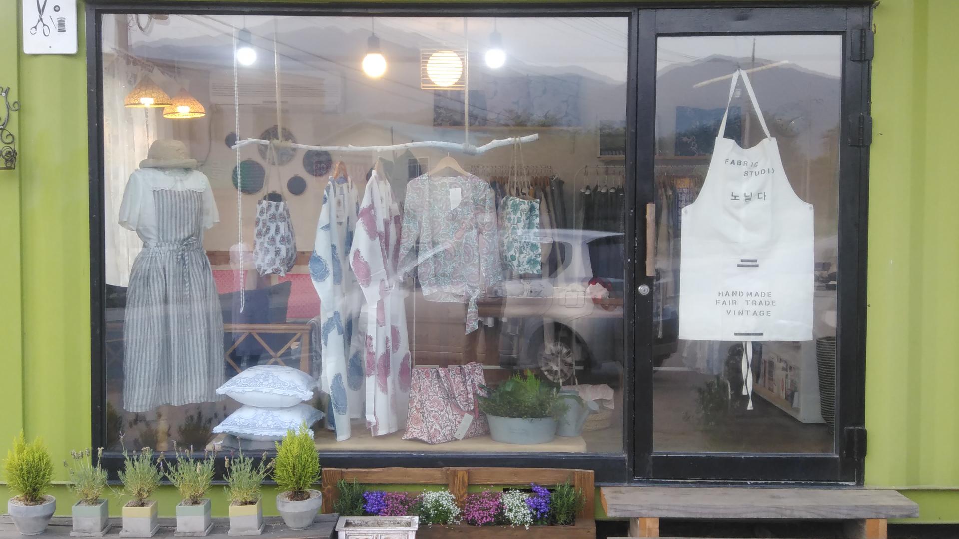 처음부터 옷가게를 열 생각이 있었던 건 아니었다. 어느 정도 재정과 경험이 쌓이면 에콜로지카라는 이름으로 공정무역을 하고픈 꿈이 있었고 그때까지 뭐라도 해보려던 차에 세상에 예쁜 것들을 모아 파는 가게를 여는 것이 어떠냐는 빵아재 영준샘의 뜬금없는 한마디가 마중물이 되었다. 신기하게도 서로를 몰랐지만 같은 시기에 인도에 있었던 히말라야 카페의 성진씨가 가게 옆에 비어있던 컨테이너를 선뜻 빌려주었고 세상을 떠돌며 모았던 이런저런 소품과 좋아했던 빈티지 의류들, 인도에서 가져온 옷감과 옷들을 모아 ‘노닐다‘를 열고서 산내 사람이 되었다.
