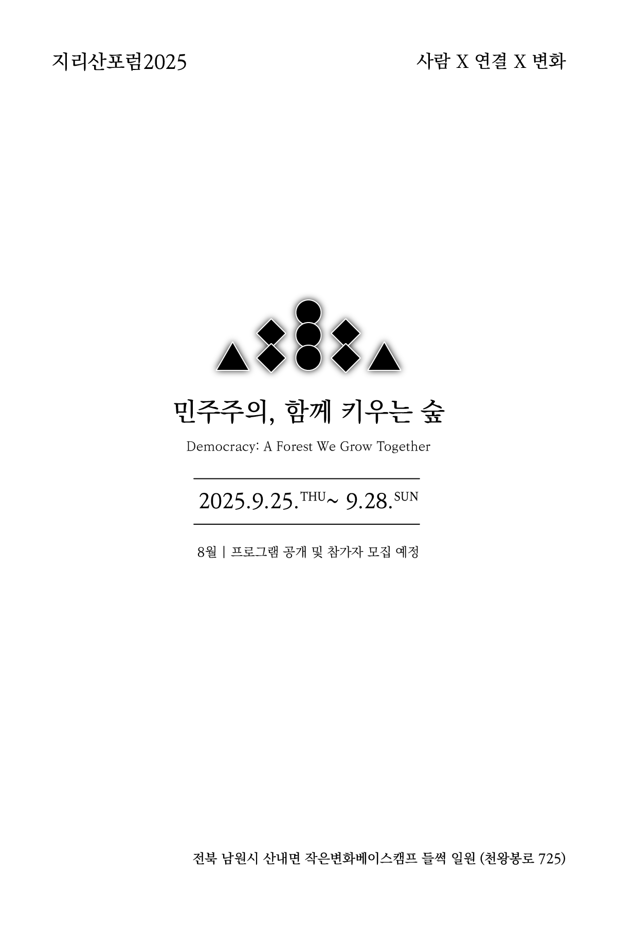 지리산포럼2025, 9/25(목)-9/28(일) 개최 예정