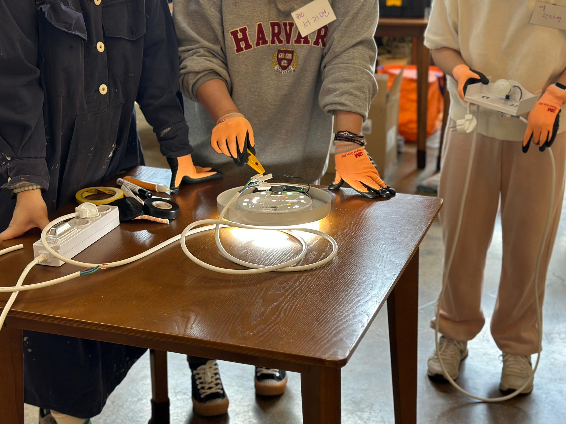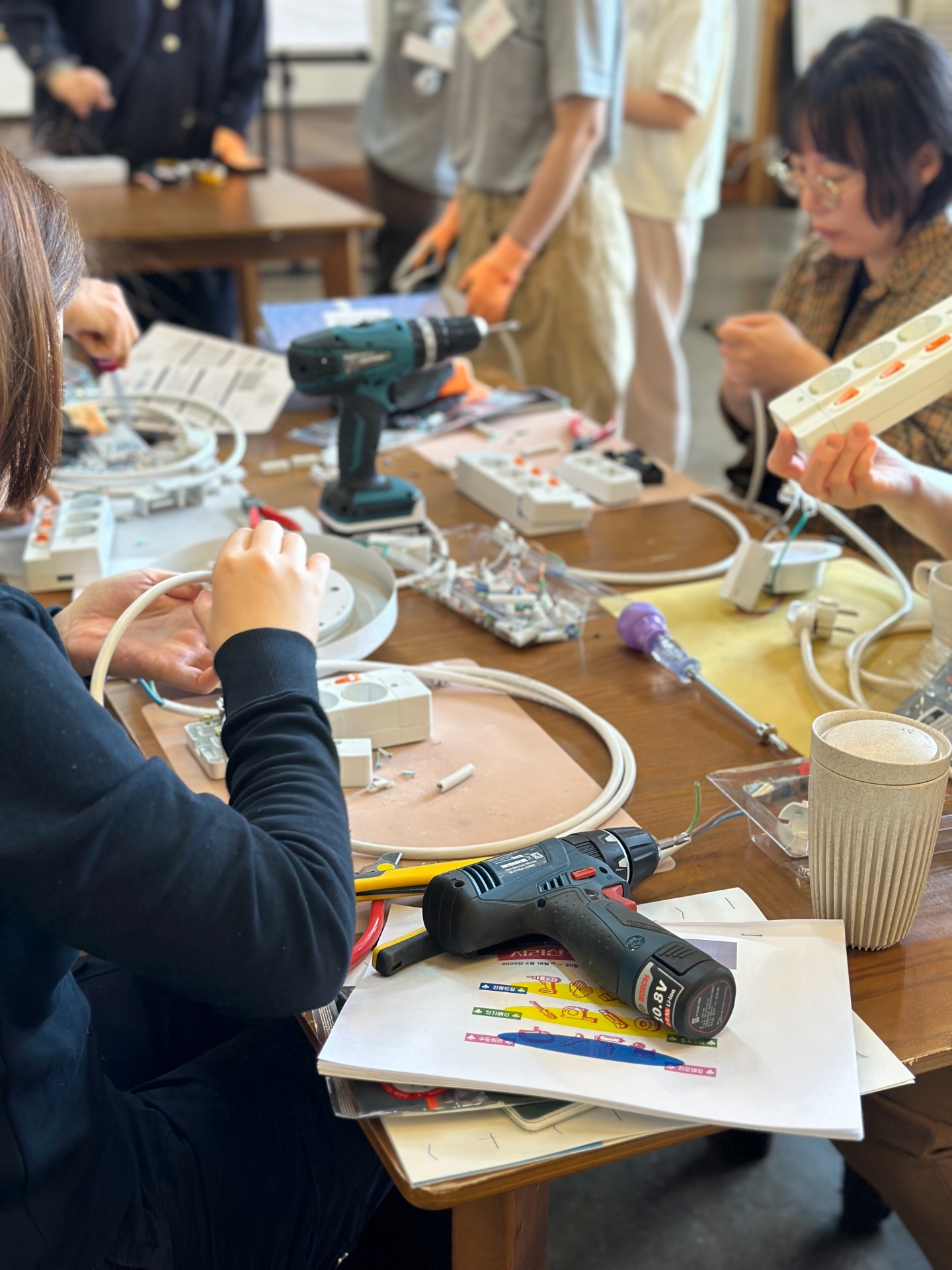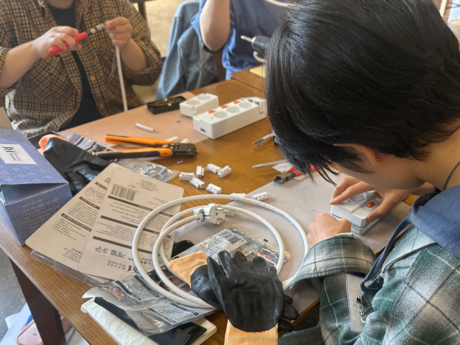 - 전기 기초 이해 & 멀티탭 만들기 실습 – 생활전기 이론과 전등교체, 멀티탭 조립을 실습합니다.