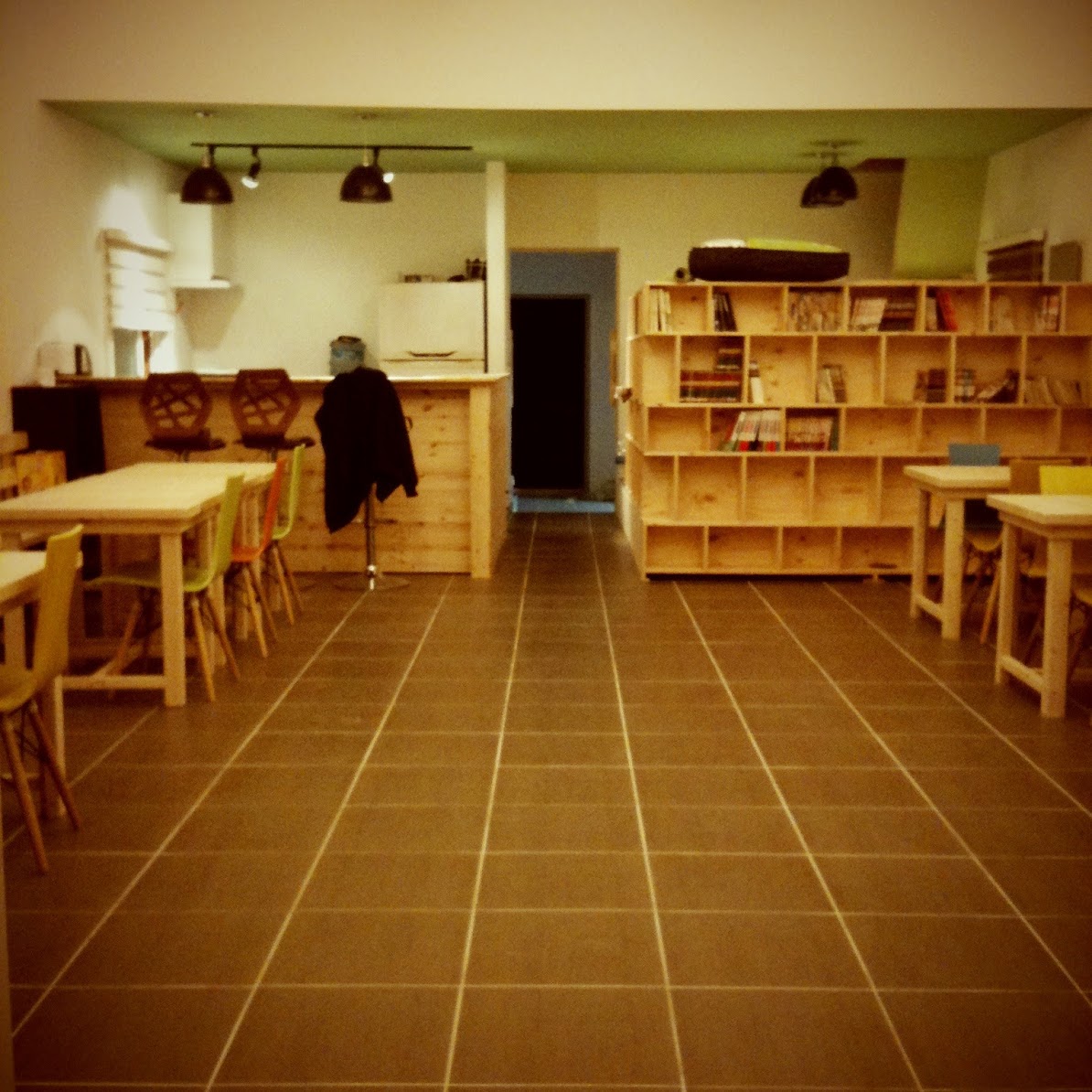 홀에는 모두 12개의 테이블이 있고, 책장으로 둘러싸인 작은 모임방이 있구요. 다락방도 있답니다.