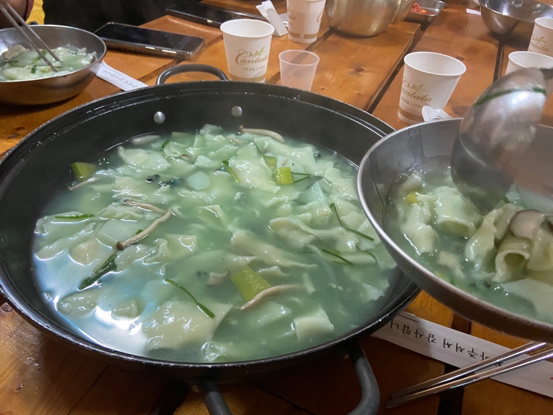 실상사 앞 다슬기 맛집 '까만집'의 다슬기 수제비 한 사발.