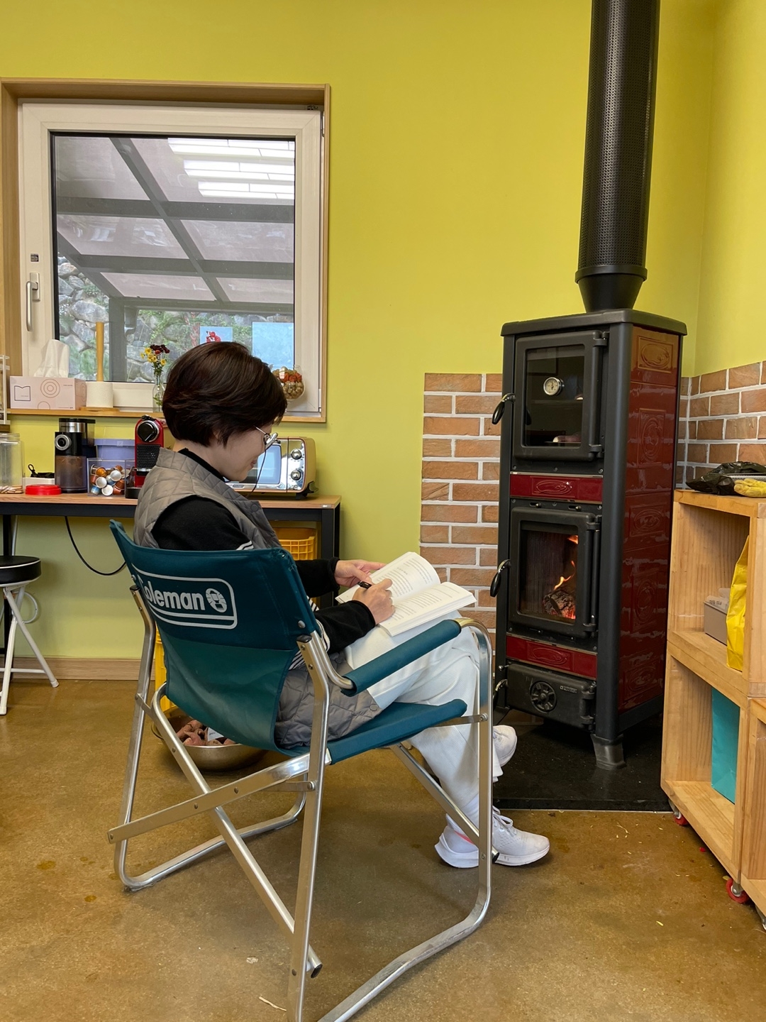 햇볕은 따뜻하지만 바람은 찬 슥소 앞에서, 그리고 타닥타닥 장작 타는 소리가 들리는 난롯가 앞에서!