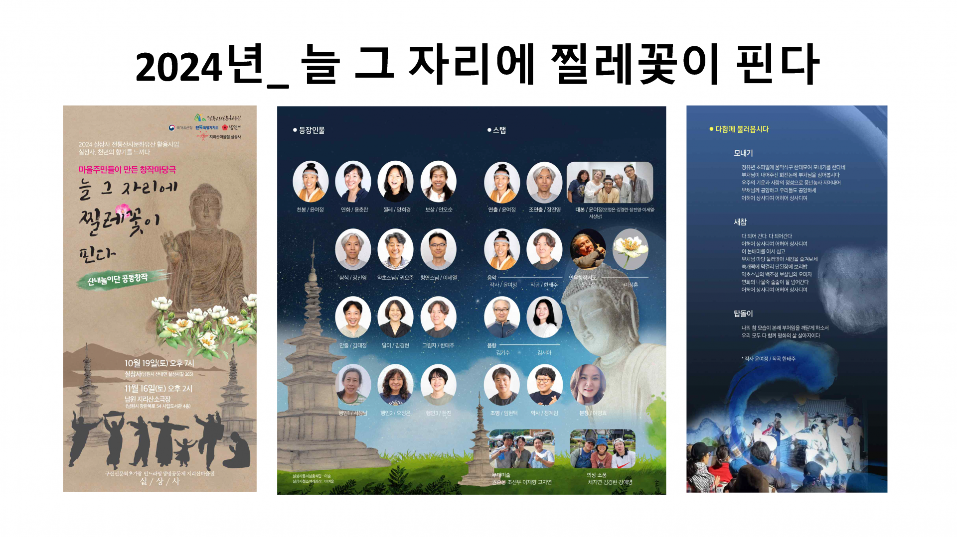 김수미, 김한나, 실상사, 오정윤, 장일안, 정상순, 토닥, 청명, 한형민