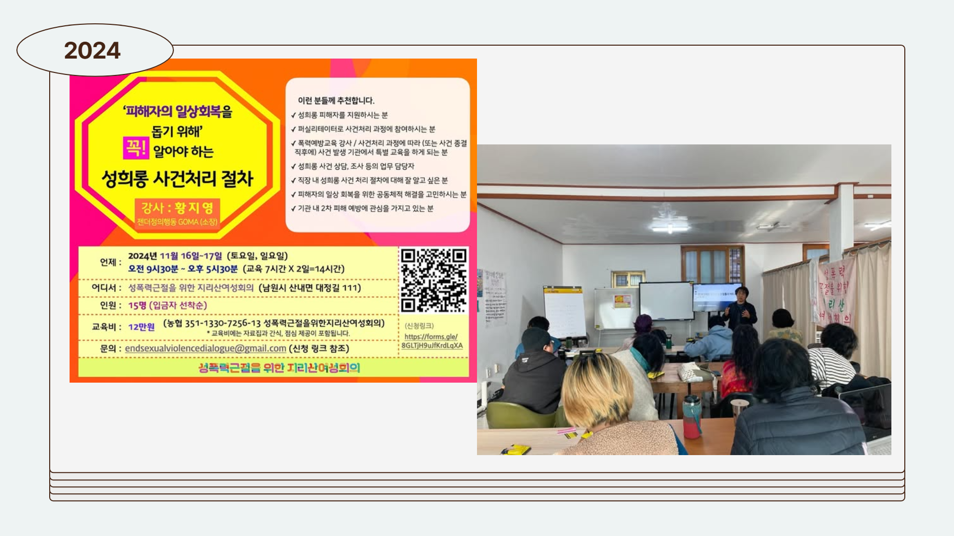 - 카카오 채널 : 성폭력근절을위한지리산여성회의