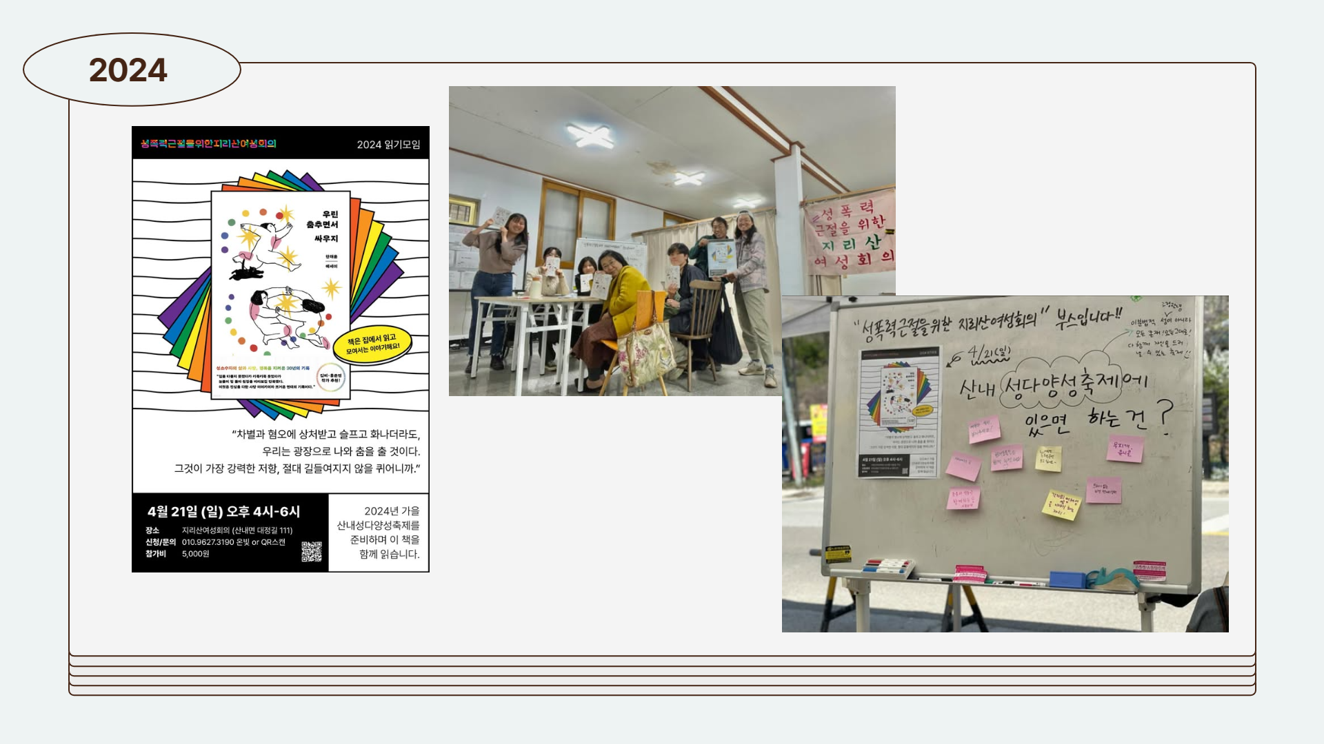 - 5월 - <적극적 합의와 성평등한 관계를 위한 섹슈얼리티 워크샵> 진행 및 워크북 제작